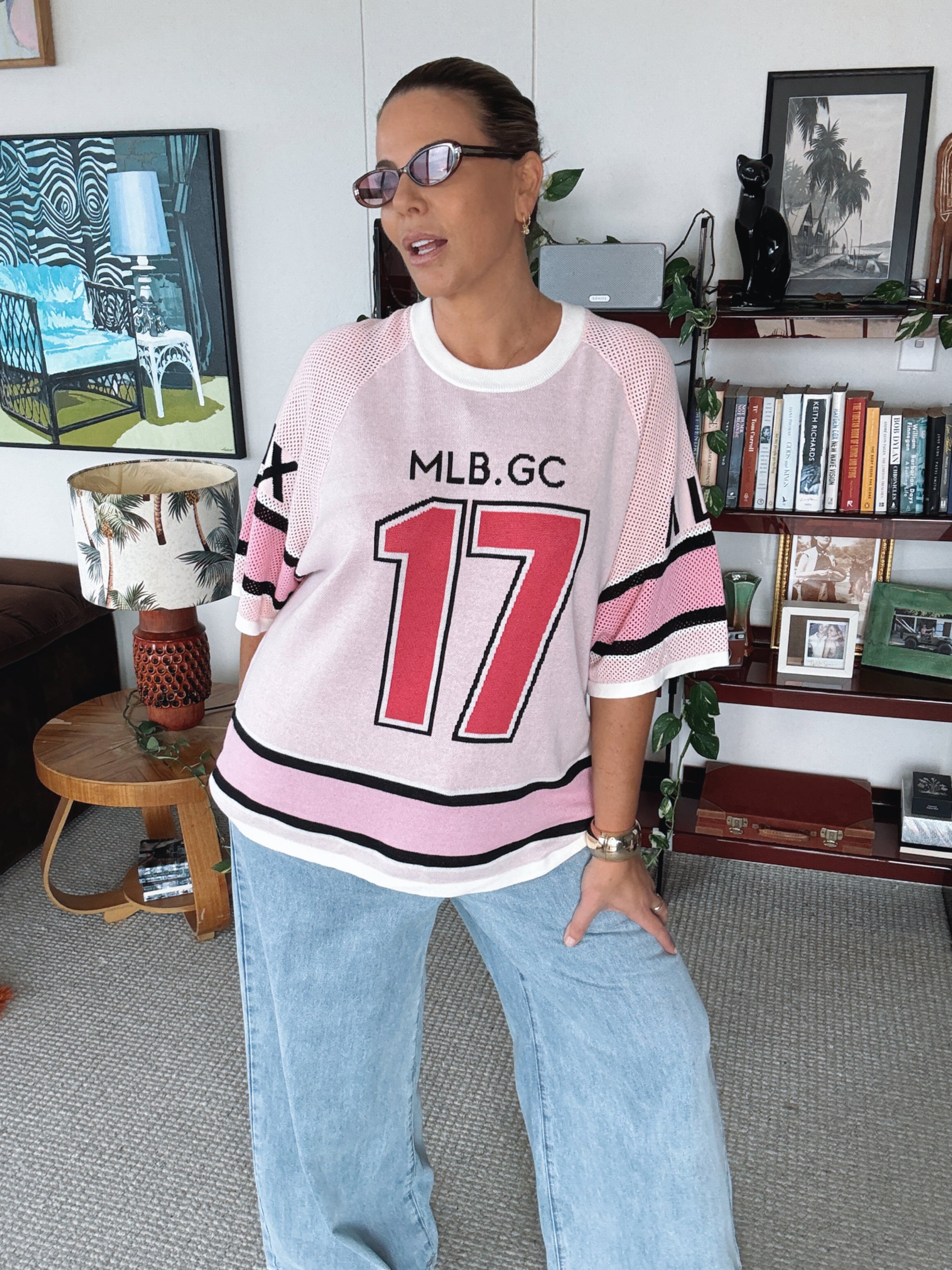 - Loose mid-length raglan mesh sleeves for a modern, breathable edge