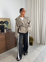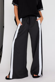 The KINGSLEY pants are the essential piece for a sporty chic look. Its loose fit paired with a stripe design and ankle splits provides a luxurious athletic appeal.