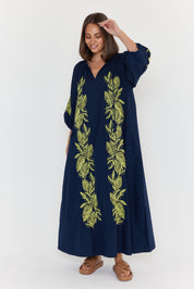 - Narrow ties at centre front neck with self-fabric bell shaped ends
