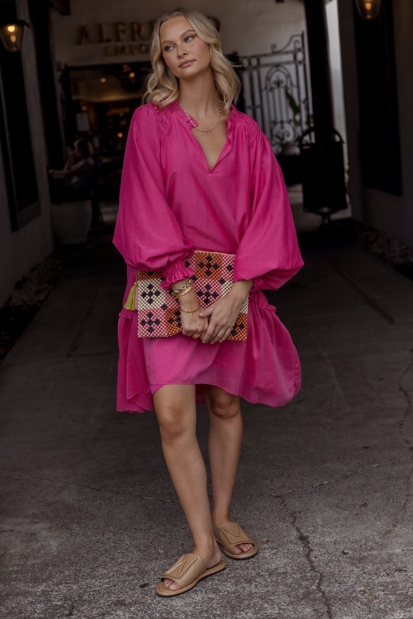 - Long balloon sleeves with elastic shirring detail and frill at hems