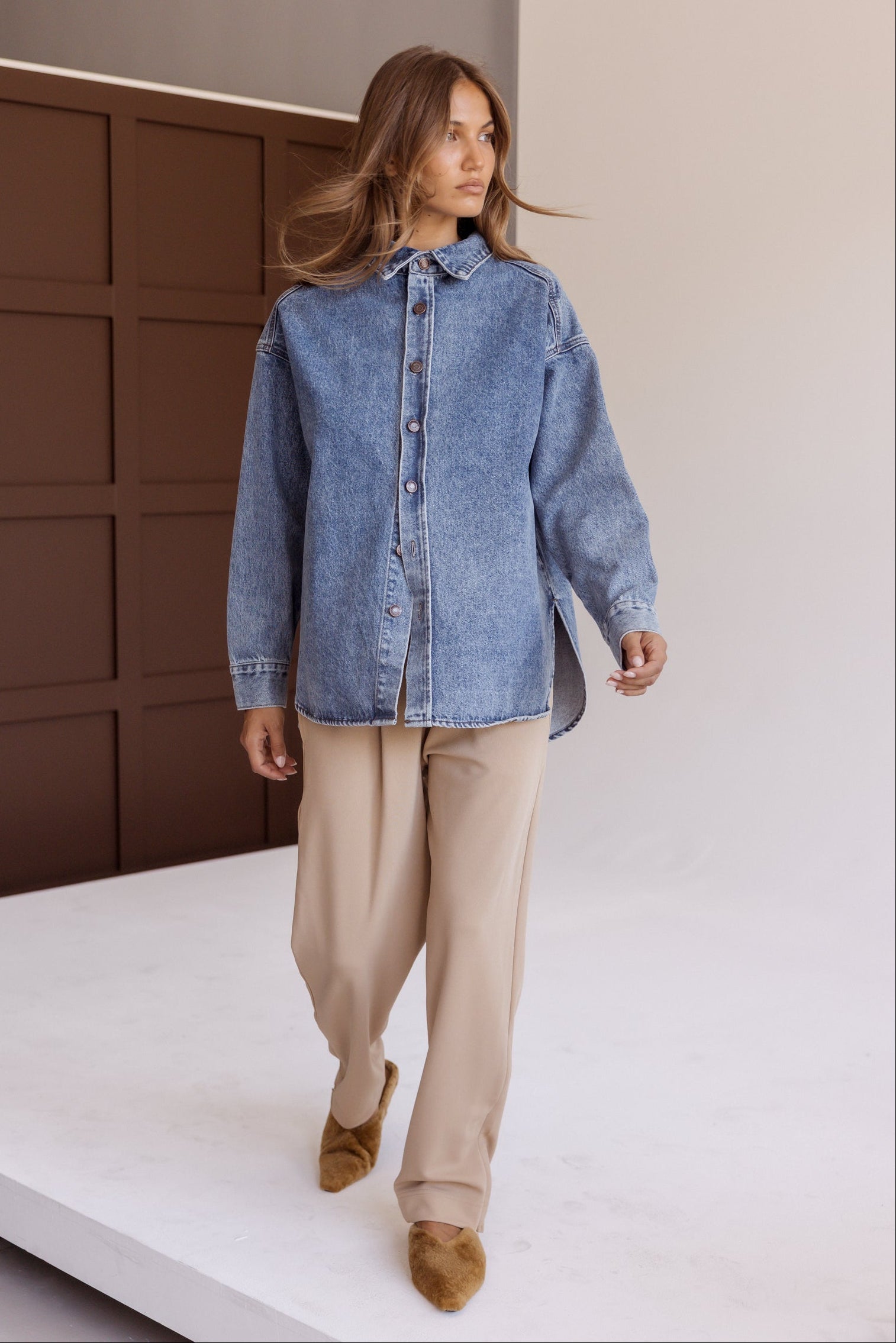 - Vintage-wash blue denim shacket