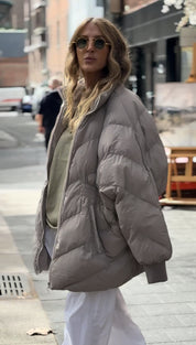 Brave the elements in the BONO Puffer Jacket—where warmth meets street style. Designed to be lightweight keeping you cosy without the bulk. Â The oversized fit is balanced by an elastic cinch waist to create shape, while ribbed cuffs lock in warmth. Finished with zip pockets, custom ALX pullers, and a subtle rubber logo plate beneath the collar, this jacket is the perfect blend of function and fashion.