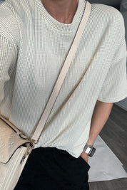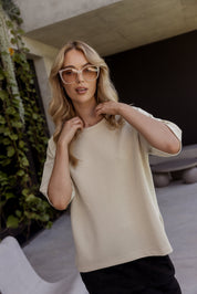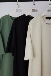 The CIRCA t-shirt in Pistachio is a classic and chic piece. It is soft and textured. The fabrication can we easily be worn into the night yet the boxy silhouette is perfect for a casual day outfit.