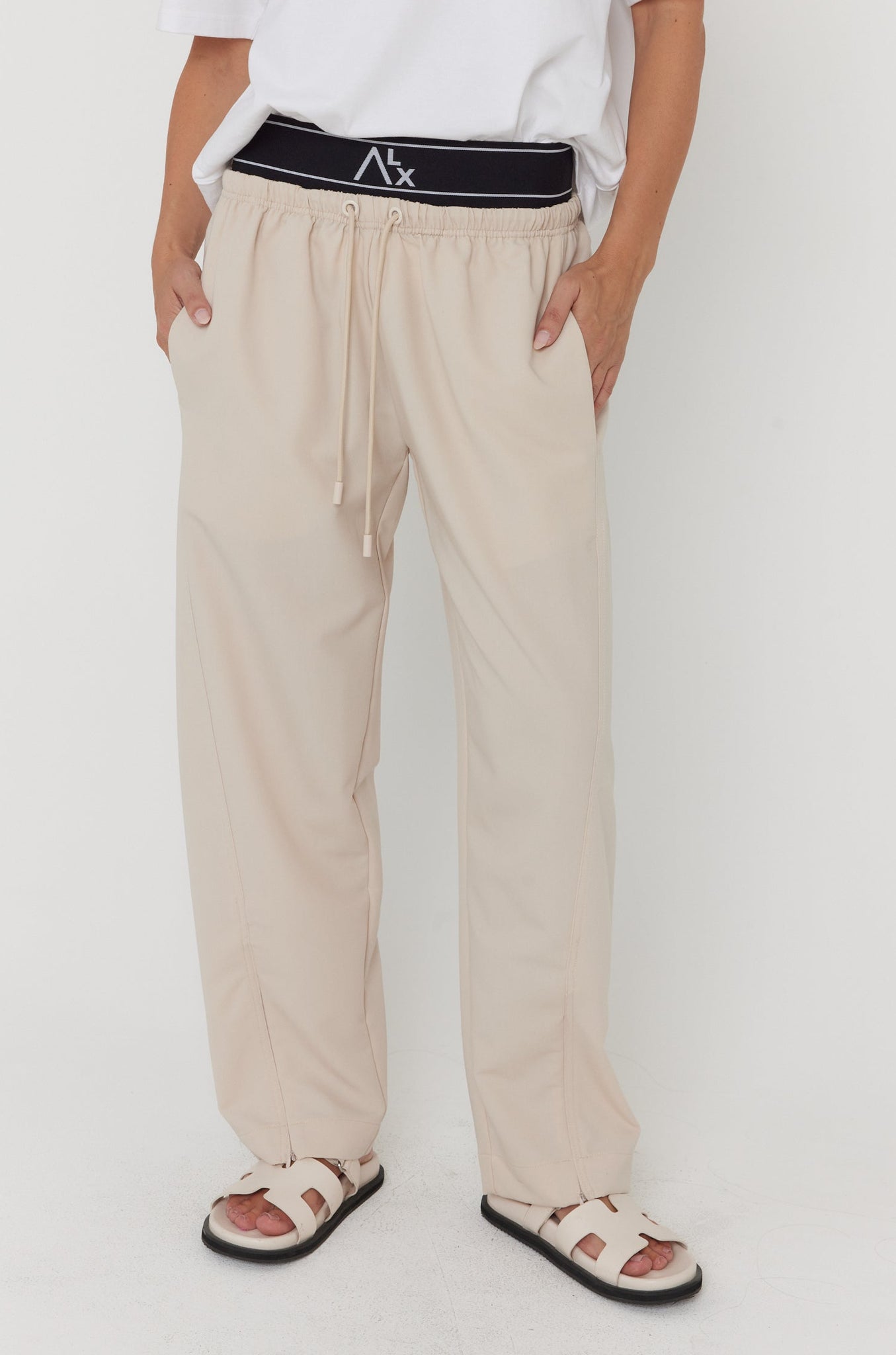 - Gathered drawstring tunnel over elastic with adjustable ties
