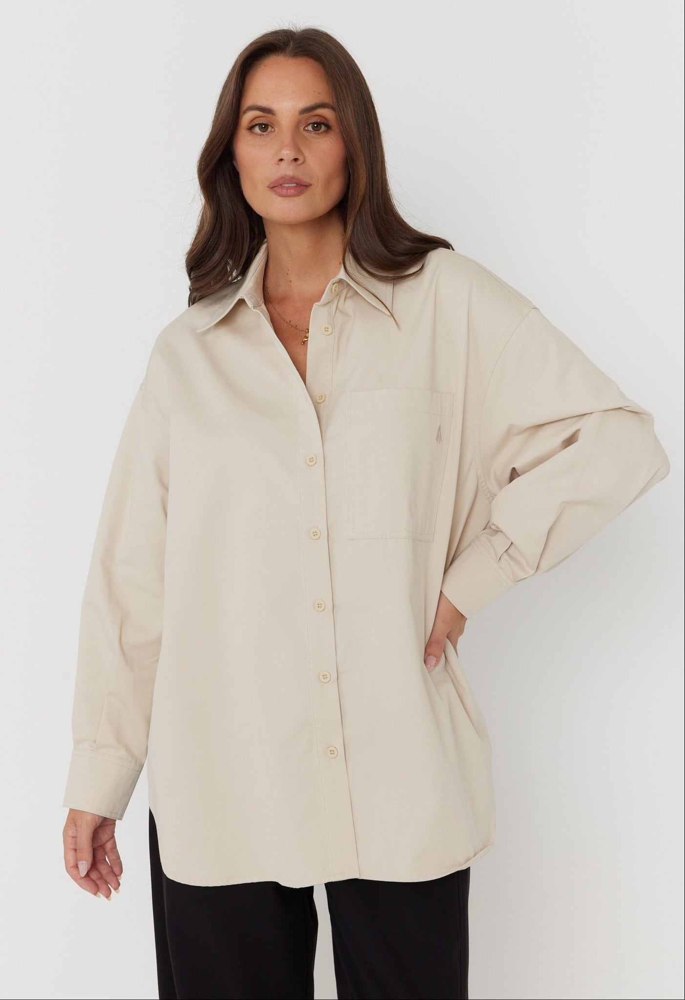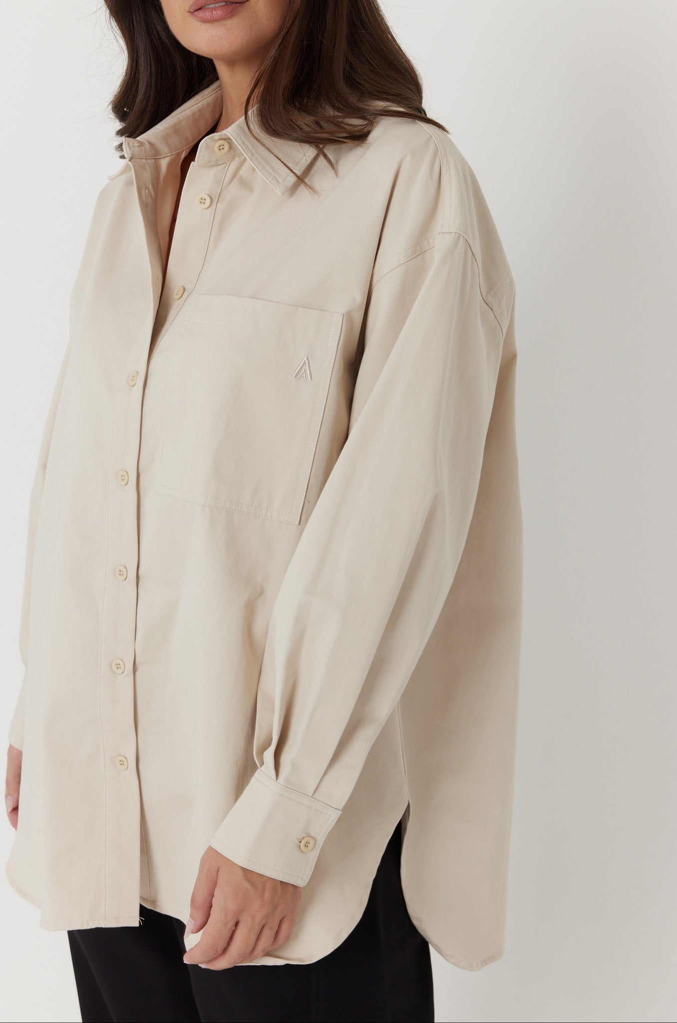 - Classic curved shirt hem