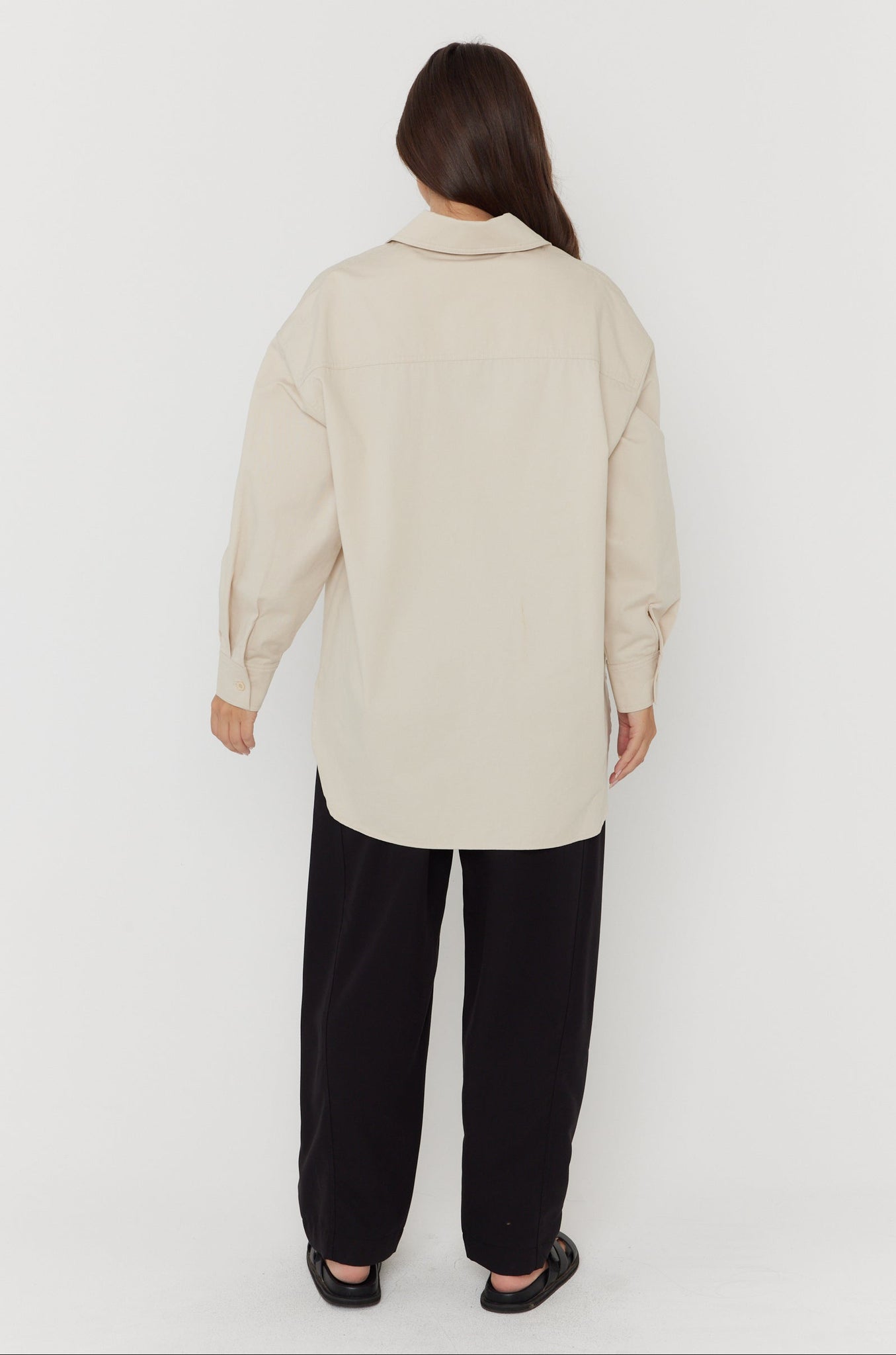 - Long sleeves with buttoned cuffs